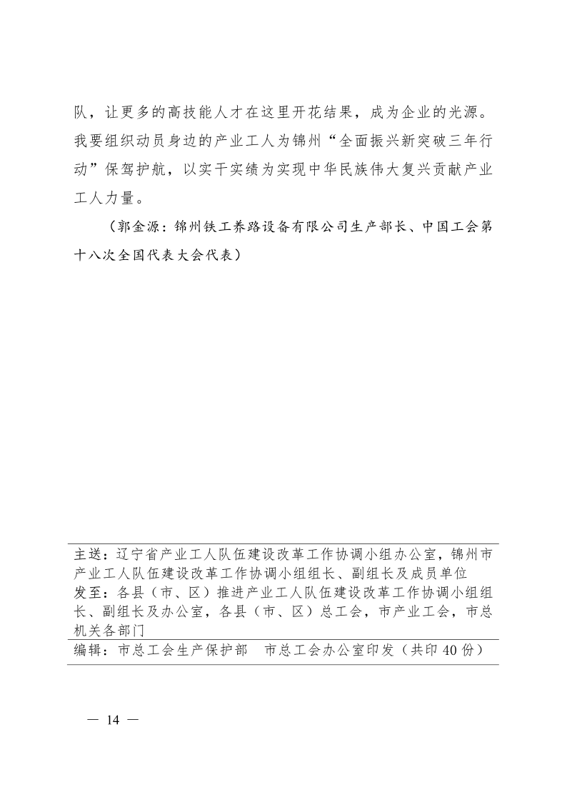 锦州市产业工人队伍建设改革工作协调小组专报(2023第4期)