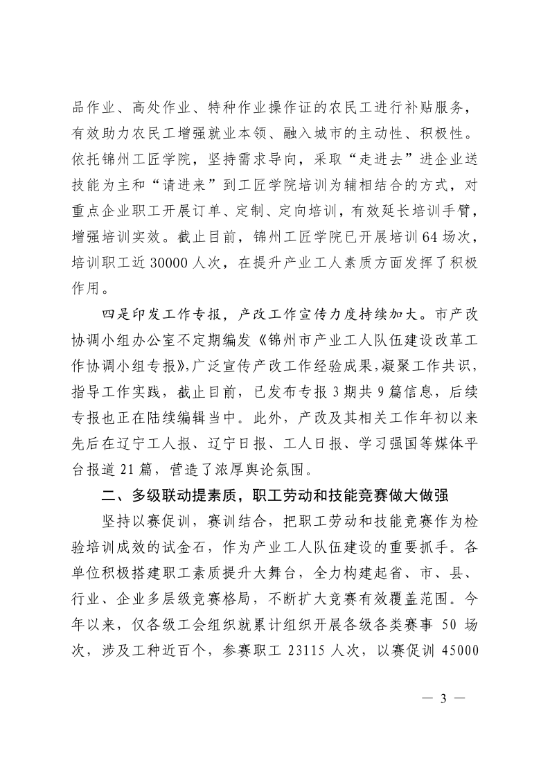 锦州市产业工人队伍建设改革工作协调小组专报(2023第3期)