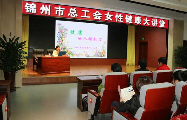3月29日下午在锦州市总工会职工会馆会议室,举办了《锦州市总工会女性健康大讲堂》,邀请市妇婴医院副院长、妇科专家王丹授课。市总工会副主席左丽雅出席讲座并讲话,来自全市的机关和企、事业单位近二百名女职工参加健康知识讲座。