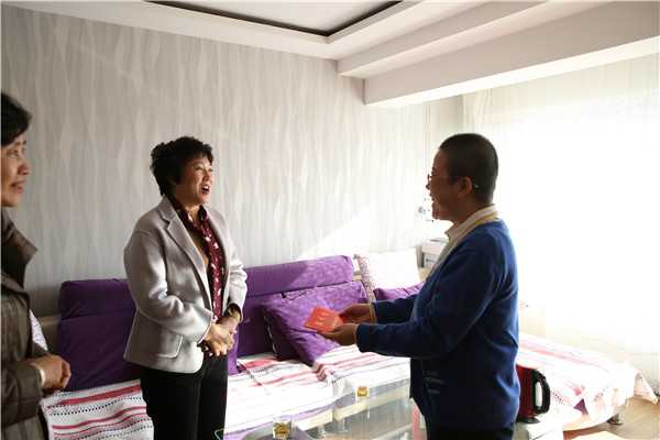 11月5日,虽然深秋时节,天气寒凉,但是在患病女职工李婷、何敬的家中却洋溢着浓浓的暖意和温情的祝福。锦州市总工会党组书记、常务副主席刘春荣,凌河区总工会副主席赵继山,中石油北燃(锦州)燃气有限公司相关领导分别到李婷、何敬的家中走访慰问,并将一万元关爱慰问金送到她们手上。走访中,刘春荣主席详细询问了她们的病情、目前治疗状况、治疗仍需支出的费用、家庭人员收入等等。刘春荣主席在祝福她们战胜疾病早日康复的同时,希望她们能积极配合医生,及时做好后续治疗,放松心情、调整情绪、释放压力,以健康的身体返回工作岗位上,继续为我市的经济社会发展出一份力,发一份光。当得知北燃燃气公司职工何敬的母亲是农村户口,同时患有白血病,孩子刚满8岁正在读小学的情况后,刘春荣主席表示,何敬的患病无疑让这个家庭雪上加霜,市总工会要做好后续的救助工作,同时要求北燃燃气公司工会也要及时伸出援手,真正体现职工之家的温暖。